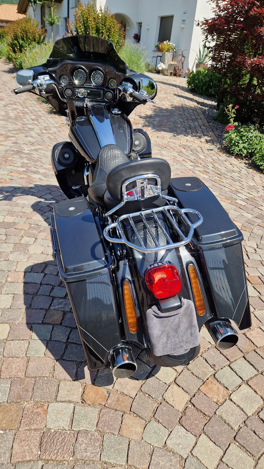 Harley Davidson Street Glide CVO in sehr schönen Originalzustand und scheckheftgepflegt. Der vorgeschriebene Austausch der Hydrostössel wurde gerade eben gemacht. Um das Soundsystem zu erhöhen wurden ein Aquatic Radio und ein zusätzlicher Verstärker verbaut.
