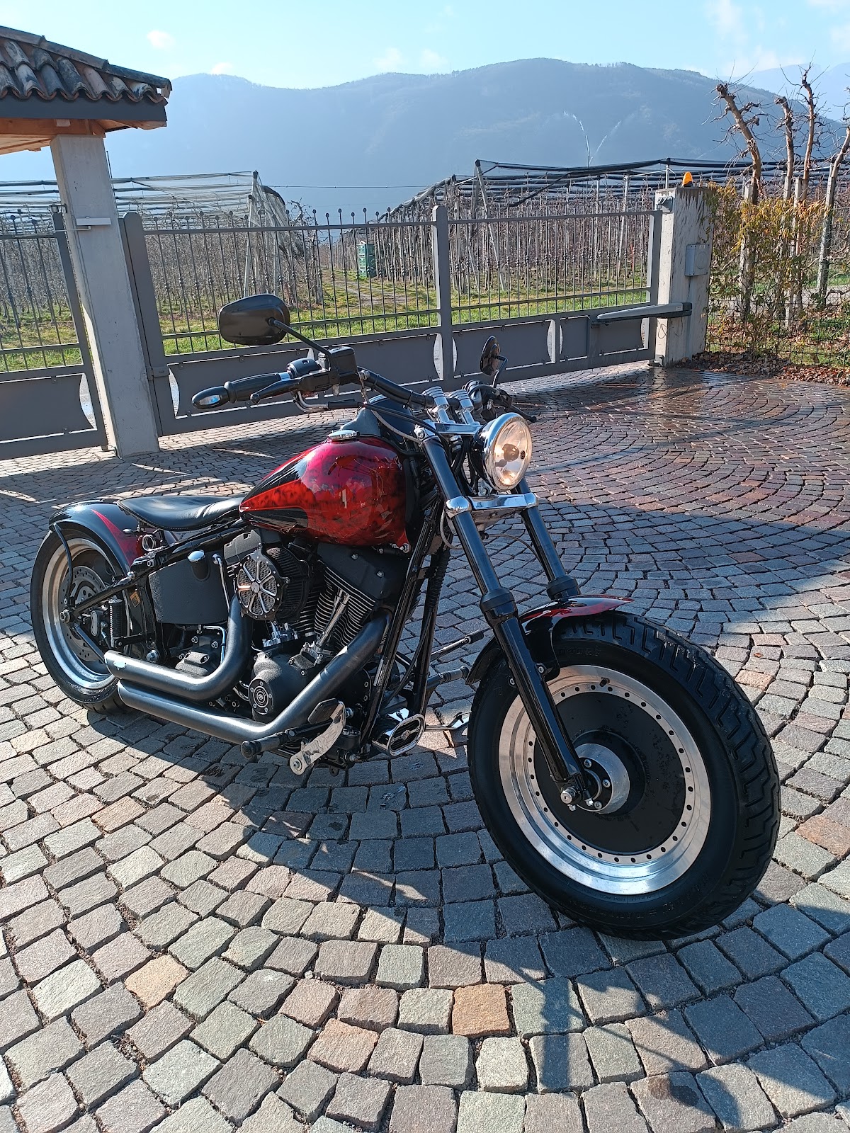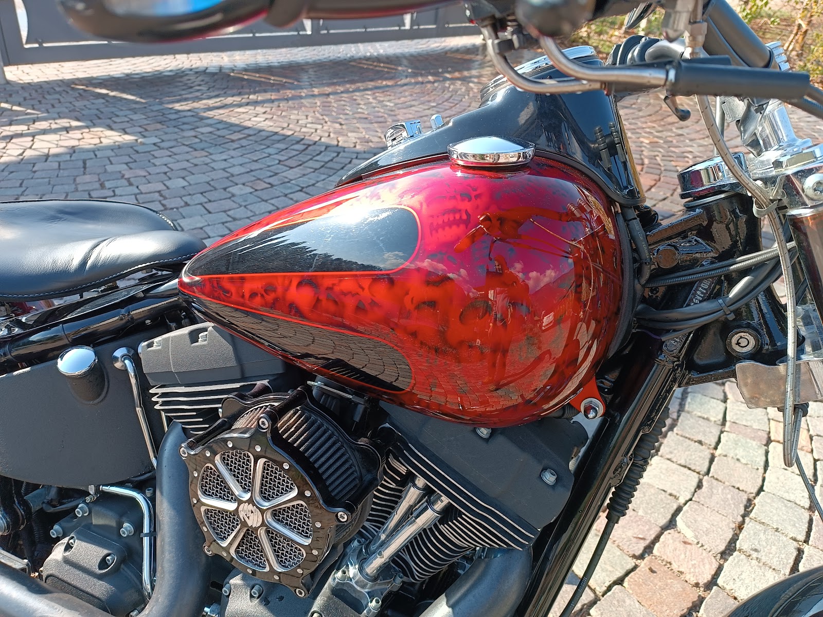 Harley Davidson Softail Night Train mit Umbau. Das Motrorrad hat sehr viel Zubehör wie zb.: vordere Reifen von Fat Boy 16", vordere eloxierte Gabel, hinteres Heck umgebaut, Bremsanlage vorne von discacciati, Auspuff Vanse Hines, Luftfilter, vordere Kotflügel, Lenker und noch vieles mehr. Revision und Service neu. Bei diesen Fahrzeug ist kein Eintausch möglich da es ein Kundenauftragf ist.