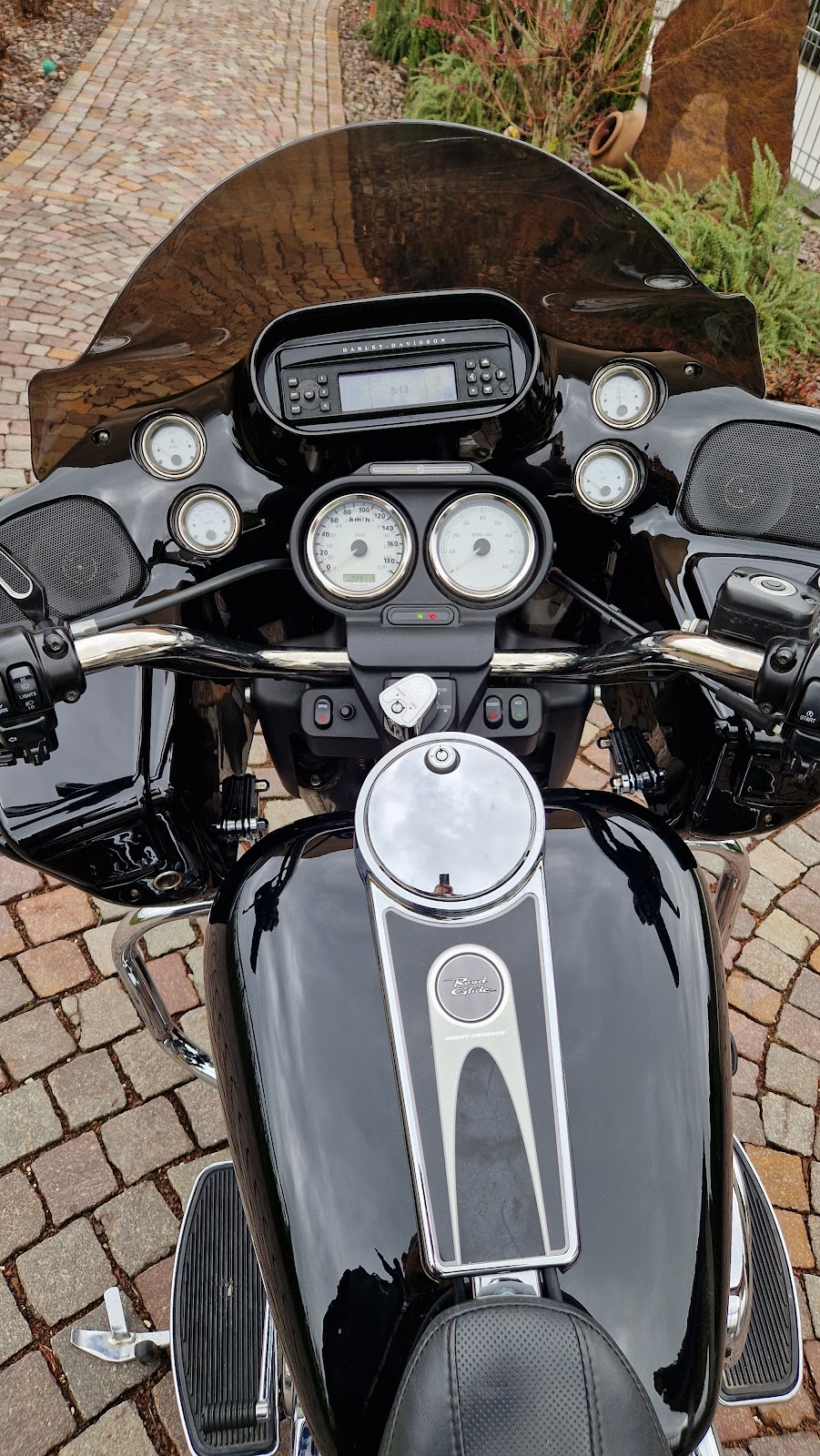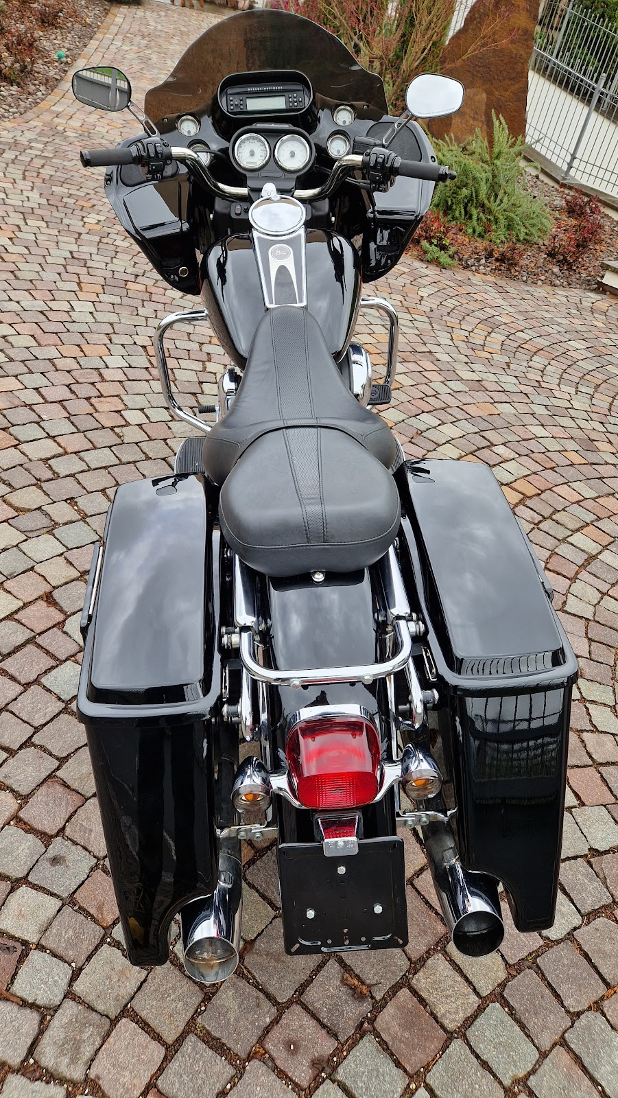 Road Glide in ottimo stato. Unico propietario con tagliandi effettuati regolarmente e con la sostituzione dei pattini catena came appena effettuato. Accessori: Faro ant a led, frecce oscurate, filtro K&N, parabrezza basso nero, valige prolungate, manubrio, manopole e leve nere.